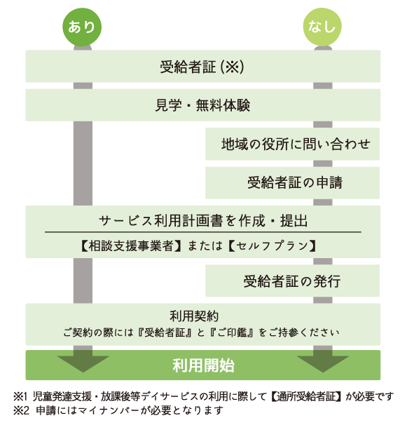 児童発達支援*・放課後等デイサービスは市区町村発行の受給者証があれば9割が自治体負担となり、1割が自己負担となる制度です。